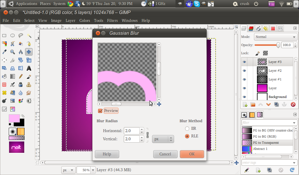 4. make a new layer and set the blend tool mode to radial as the fg color as black and set the gradient mode to fg to alpha ,then click the <-> box next to change the gradient to reverse